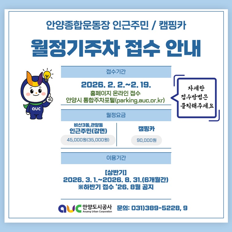 사이트 전체메뉴 고객참여 고객참여 민원게시판 자유게시판 주민참여예산제 FAQ 갑질·부패행위 및 청탁금지법 위반 신고 고객제안 칭찬합시다 유실물문의 유휴공간대관 생활공구대여 종합관찰활동 정보광장 정보광장 알림사항 공사소식 입찰정보 수의계약내역 공개방 관련사이트 채용정보 홍보갤러리 공사소개 공사소개 사장 인사말 배경 및 연혁 조직 및 인원 대표캐릭터 소개 공사CI소개 부서별 업무연락처 고객서비스헌장 안전보건정보 관계법령 공사 찾아오기 노동조합 열린혁신정보공개 열린혁신정보공개 사전정보공표 열린혁신공공데이터개방 비공개세부기준 미션 및 비전 일반현황 사업계획 경영성과 인권경영 윤리경영 예산 외부감사결과 이사회 개최현황 경영평가 영상정보처리기기운영방침 사업소개 사업소개 종량제봉투 중앙지하도상가 견인업무 가로보안등 공영주차장 공영차고지 종합운동장 석수체육공원 호계체육관 비산체육공원 평촌자유공원 축구장 호계복합청사 호현복합청사 새물공원 서조체육시설 수도군단 생활체육시설 교통약자이동지원 병목안캠핑장 개발사업 개발사업 도시개발사업 도시정비사업 민간공모사업 개발사업 고시/공고 도시개발 의견제출 청년임대주택 공급