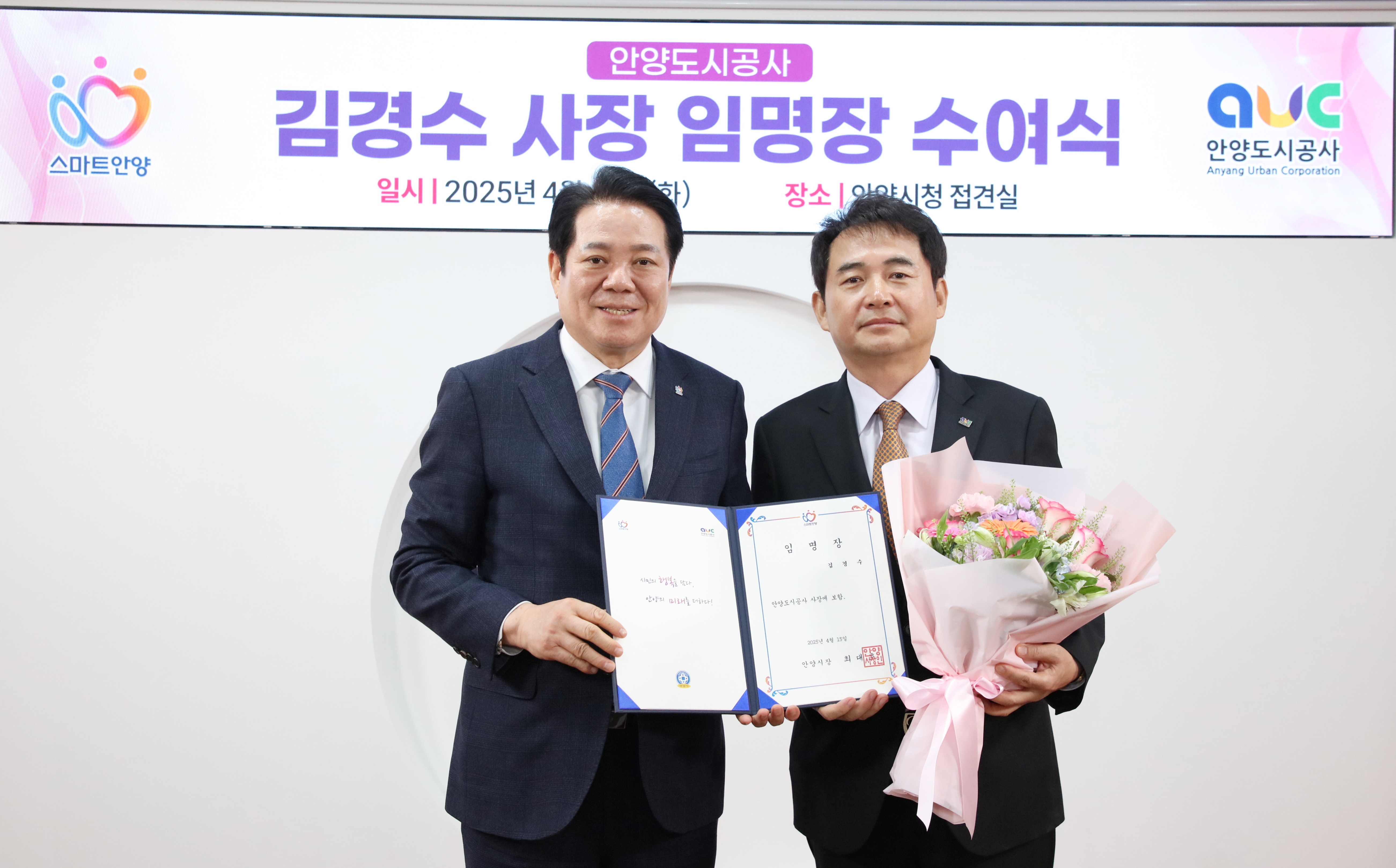 안양도시공사는 지난 15일 안양시청 접견실 및 공사 대회의실에서 신임 김경수 사장의 취임식을 개최했다.