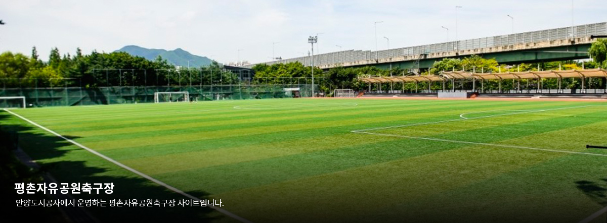 사이트 전체메뉴 평촌자유공원 축구장 안내 평촌자유공원 축구장 안내 현황 이용안내 찾아오시는길 시설물 시설물 축구장 대관안내 대관안내 대관 안내 대관사용료 안내 대관현황/신청 대관신청 조회/취소 고객참여 고객참여 민원게시판 자유게시판 FAQ 갑질·부패행위 청탁금지 고객제안 칭찬합시다 유실물문의 정보광장 정보광장 알림사항 행사안내 관련사이트 입찰정보 홍보갤러리